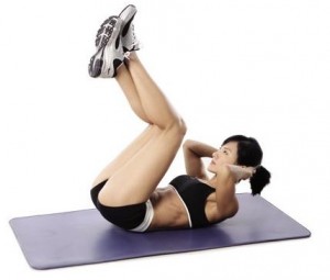 นอนราบไปกับพื้น ยกขาขึ้นให้ตั้งฉากกับพื้น ให้ช่วงน่องอยู่ในลักษณะไขว้กันไว้ เพื่อจะได้เพิ่มน้ำหนักในขณะที่ยกตัวขึ้น มือทั้งสองข้างประสานกันไว้ที่ท้ายทอย ยกศีรษะขึ้นโดยอาศัยแรงยกจากลำตัวท่อนบนและจากไหล่ทั้งสองข้าง โดยมือทั้งสองข้างคอยประคองศีรษะเอาไว้
